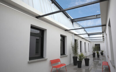 Aménagement des bureaux de la médecine du travail. 2018. Saint-Etienne. Les bureaux de la SLST (Sud Loire Santé au Travail) se sont installés dans une partie d'un bâtiment industriel qui a été réaménagé afin d'accueillir dans les...